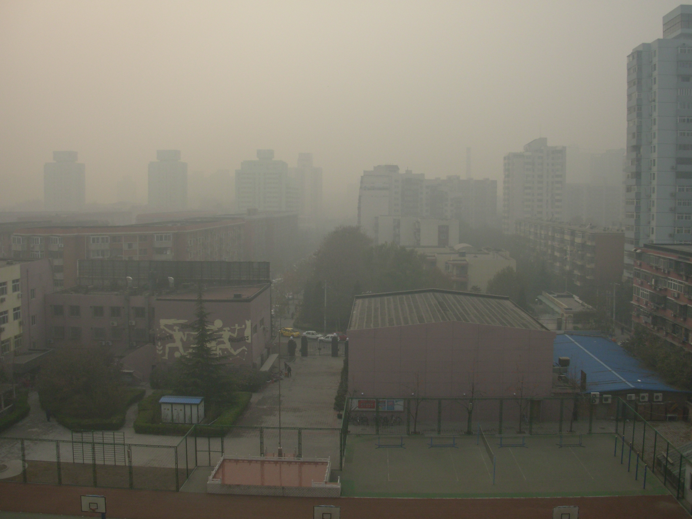 Smog obscures the view of anything more than one block away from my Beijing balcony.